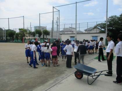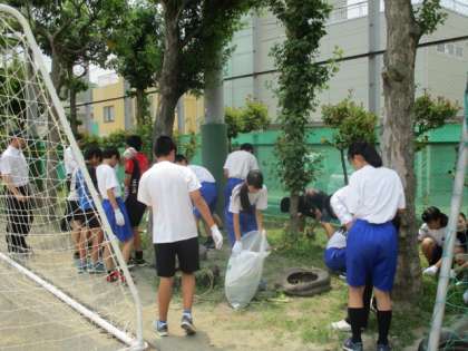 高温の天候に考慮して、作業時間を短縮しての実施でしたが、参加生徒は100名を超え、意欲的に活動していました。