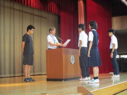 16日に開催された、区中学校夏季陸上競技会で入賞した選手の表彰をいたしました。
