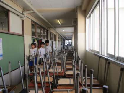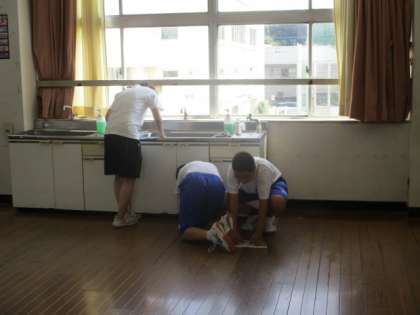 各分担個所に生徒は移動し、1学期の汚れを落としていました。気温が高くなっていたため、通常の大掃除より時間を短縮して実施しました。