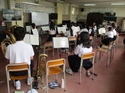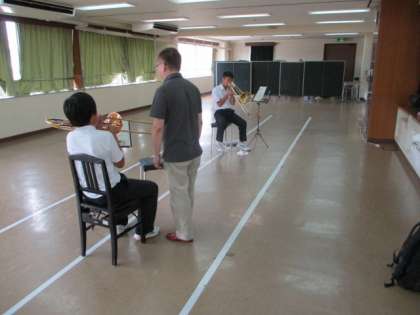 吹奏楽部の練習の様子です。今日は学び舎の小学校の先生に技術指導をしていただきました。