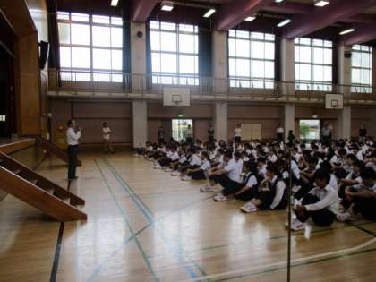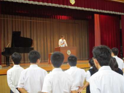 校長先生からは、夏休みを振り返るとともに、2学期は様々な行事もあり「本気で取り組むことによって、充実したものが生まれる」とのお話がありました。また2学期の生活に向けて生活指導主任の先生からの注意もありました。