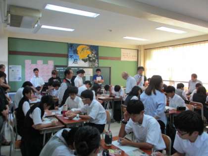 5日6校時、教科「日本語」の研究授業が3年B組で行われました。「衣」の単元の着物の学習でした。独特な着物の文様には様々な思いや意味が込められていることを学びました。生徒は真剣に取り組みました。