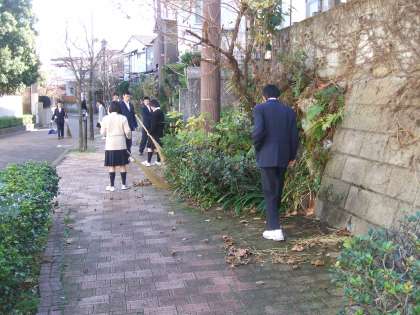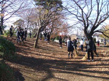 12月11日(土)11時より、地域清掃活動を行いました。1年生は猫じゃらし公園で、2年生は自由が丘方面の遊歩道で、3年生は校庭で、ゴミ集めや落ち葉清掃などを行いました。