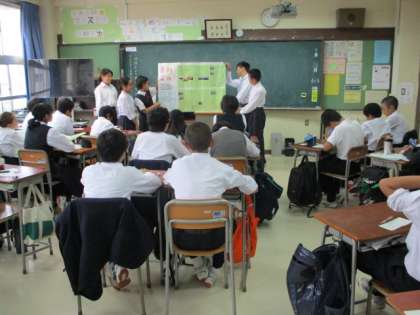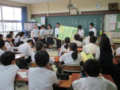 1年生では、1学期に行われた河口湖移動教室の事後学習の成果を班ごとにまとめ、26日に発表会を行いました。班で協力してしっかりと発表できました。