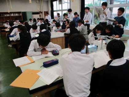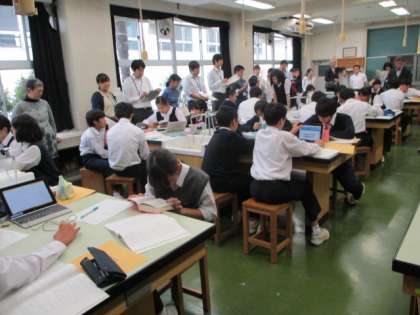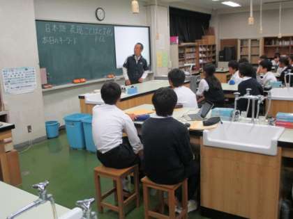 27日午後、2年A組で教科「日本語」の研究授業が行われました。区内中学校の教科「日本語」担当の先生方がたくさん来校し、授業を参観しました。