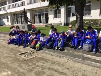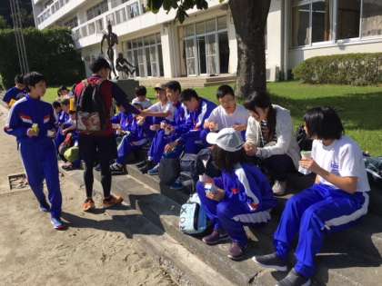 学園に戻りおやつです。皆元気です。入浴後、カレー作りです。