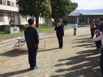 河口湖林間学園での閉園式の様子です。生徒代表挨拶も八幡中の生徒が立派に務めました。朝は見えなかった富士山も綺麗に顔を出してくれました。