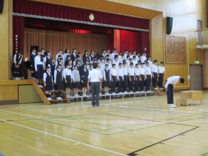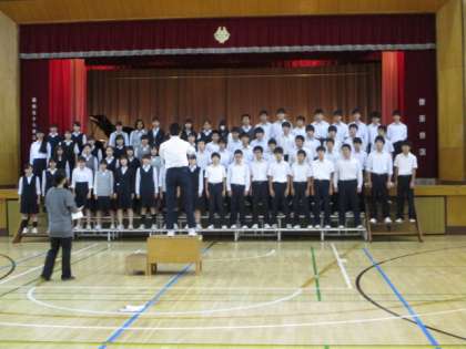 5日6校時、3年生は体育館で合唱練習を行いました。全員合唱の入退場など、本番に向けて確認をしました。3年生の全員合唱はさすがです。本番が楽しみです。