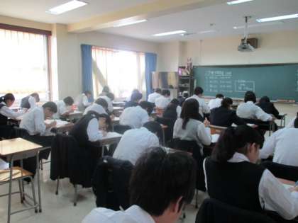 本日は、社会、国語、英語の3教科です。生徒は真剣に取り組んでいます。
