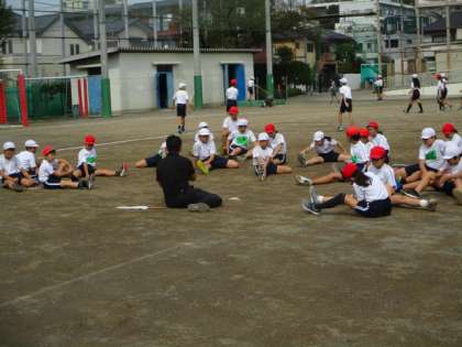 連合運動会本番では八幡小学校の児童も九品仏小学校の児童も、自己ベストをめざして頑張ってください。