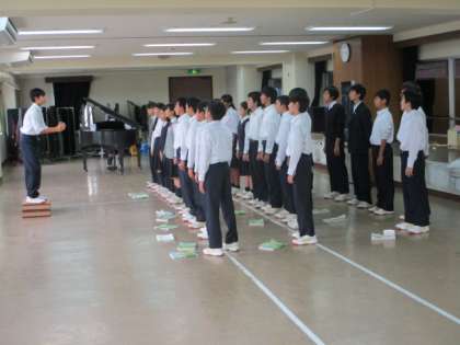 体育館、ホールでの練習風景です。本番まであと少し、気持ちを合わせて練習に取り組みましょう。