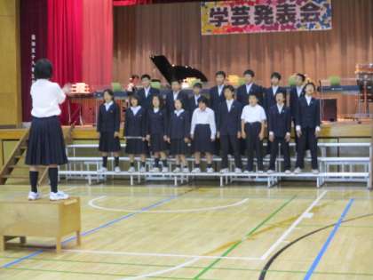 各学級で前日の合唱練習を行いました。3年生はホールで学年全体で練習をしました。C組は体育館でリハーサルです。さあいよいよ明日が本番、楽しみです。