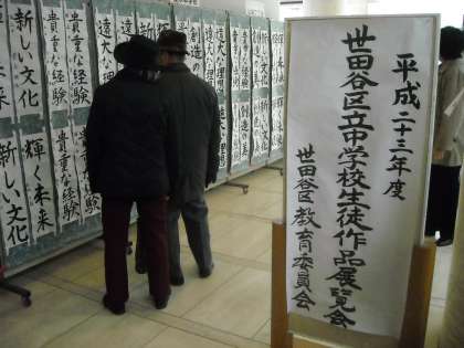 ただいま世田谷区美術館にて、区立中学校の生徒作品が展示されています。これは、毎年この時期に行われているものです。本校からは、書写と美術作品を出品しています。