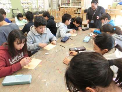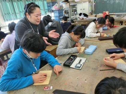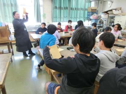 1月18日には九品仏小学校で、中学校の美術科教員が6年生に授業を行いました。