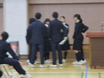 6日1.2校時に、土曜日に行われる「立青式」の1,2年生合同のリハーサルが行われました。2年生の実行委員会が進行を担当し、自分たちで話し合って良かったところ改善が必要なところをわかりやすく全体に呼び掛けていました。当日が楽しみです。