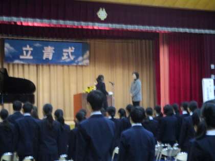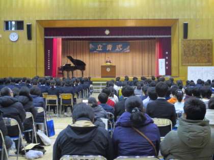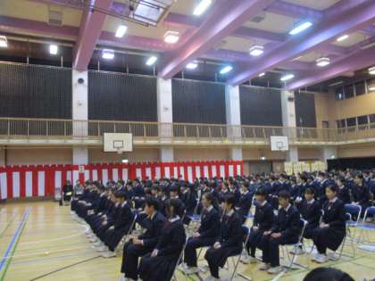 14歳の中学2年生が自分考えを堂々と発表し、地域の方々や保護者、小学生に見守られ、厳粛な雰囲気の中で感動的な式を終えることができました。司会を始め式の運営も生徒の手で行い、4月からの最上級生へのよいステップともなりました。