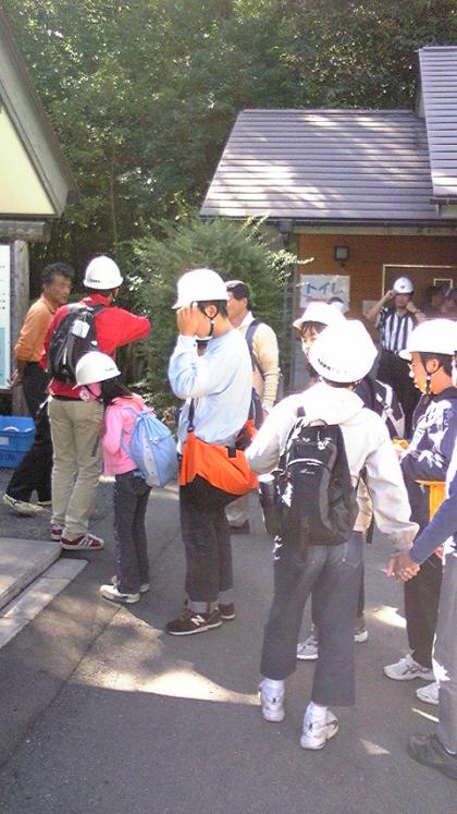 これからコウモリ穴の見学にいきます。その後、野鳥の森までハイキングをします。