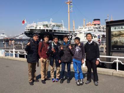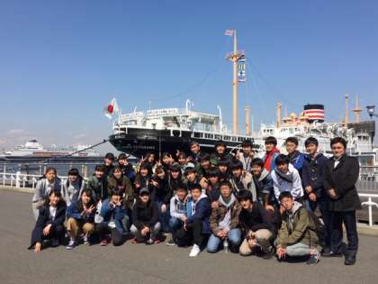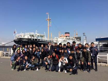 アドベンチャーゲームの後、氷川丸をバックにクラスごとに記念撮影です。