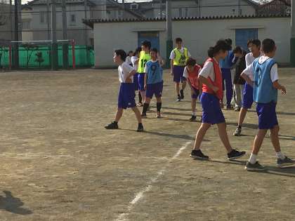 12日午後、1年生がスポーツ大会を行いました。前半は男女混合で校庭で「ボール取り」後半は男子「サッカー」女子「ドッジボール」を行いました。