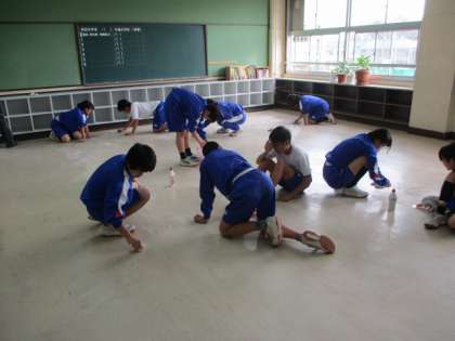 22日午後、1,2年生で教室の大掃除を行いました。1年間お世話になった教室を心を込めてきれいに掃除しました。