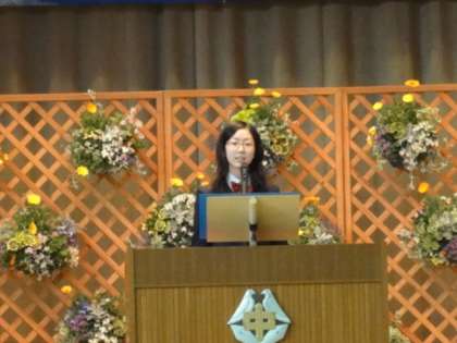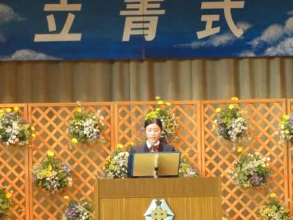 2年生全員が意見文を書き、クラスごとに発表し、生徒の投票により選ばれた7名が立青式で発表しました。