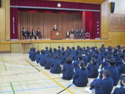 4月8日、始業式に先立ち着任式が行われました。6名の教職員が離任され、新たに9名の教職員が着任しました。今年1年間よろしくお願いします。