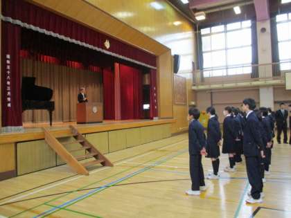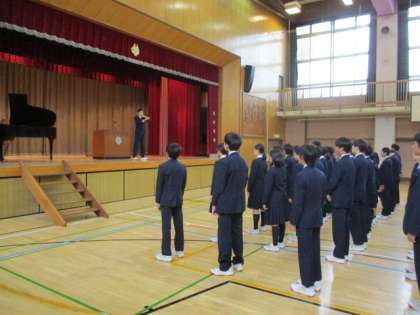 校長先生からは70周年の節目の年に際し、他の人への思いやりの気持ち大切にして生徒全員が学校生活が楽しいと思える学校をみんなの力で作っていきましょうと話がありました。