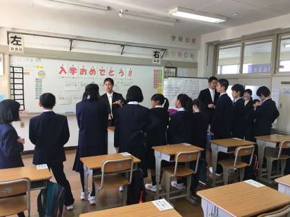 各教室で担任の先生が様々な話をしています。先生の話をしっかり聞いて、中学生にふさわしい節度ある学校生活を過ごしてください。