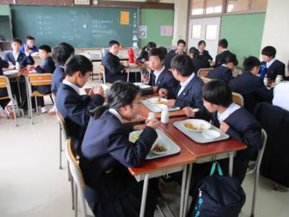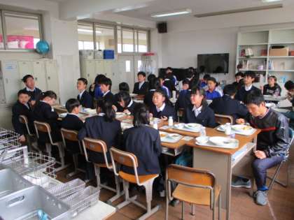 今日の献立はみんなが大好きな「カレーライス」でした。1年生も少しずつ学校に慣れてきています。