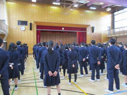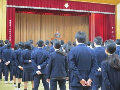 校長先生からは、間もなく始まる「令和」の時代に向けて、毎日の学校生活を通して自分自身を磨いてほしいという話がありました。また、今年度の重点目標の二つ目の「学力向上」のため1時間1時間の授業に集中して取り組むことの大切さと、4月の「人格の完成をめざして」のテーマ「あいさつ」についても話がありました。