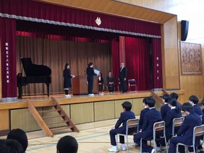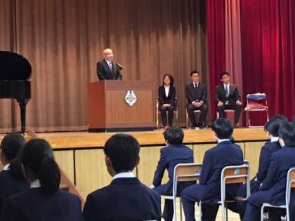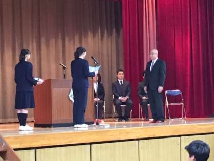 26日午後、離任式が行われました。この3月末で異動された4名の教職員が離任式に駆けつけてくれました。