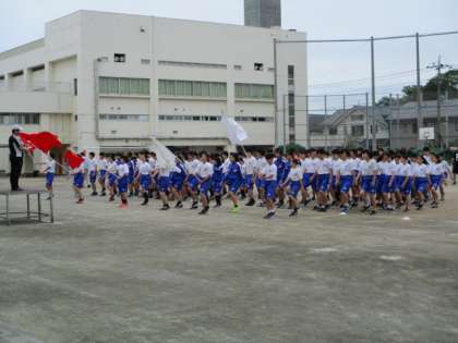 25日の「創立70周年記念運動会」に向けて初めての全校練習が行われました。今のクラスで行う最初で最後の運動会、クラス一丸となって悔いのないように取り組んでいきましょう。