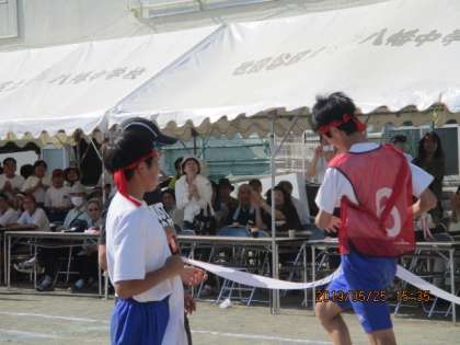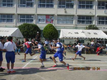 運動会の最後を締めくくる「紅白代表リレー」です。
