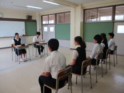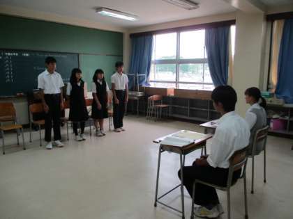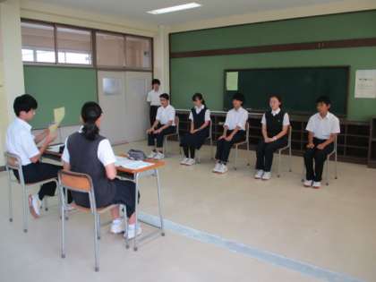5日、3年生の修学旅行実行委員による「班面接」を行いました。修学旅行の日程や決まりごと等について、生徒一人ひとりがしっかりと把握できているかを確認しました。ここでも生徒の自主的な活動を通して修学旅行の成功に向けての取組が行われています。