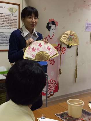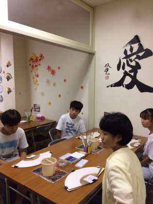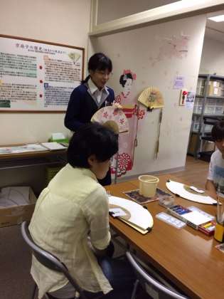 京扇子絵付体験の様子です。デザインや色づかいに悩みましたが、良い作品が出来上がりました。