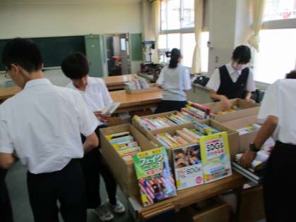 図書委員会では、通常の専門委員会の話し合いの後、図書室に新たに入れる本の選定を行いました。たくさんのジャンルの本から、本校の生徒にふさわしい図書を選ぶ作業は大変です。お疲れさまでした。