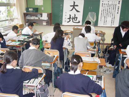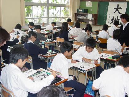 今日は、生徒一人ひとりが「大地」という文字の書写に取り組みましたが、学芸発表会では「流星」という文字の書写を廊下に掲示する予定です。