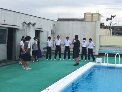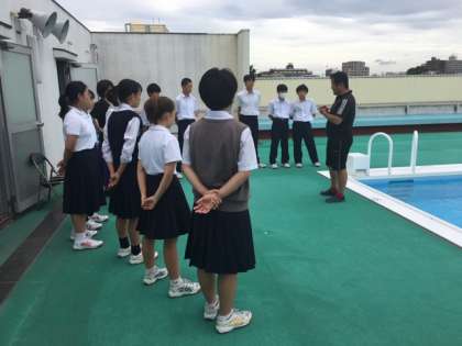 まもなく水泳の授業が始まります。それに備えての準備や安全安心な水泳の授業にするために体育科の先生から体育委員に様々な説明がありました。