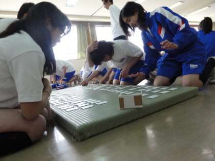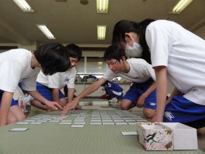 停電が危ぶまれる状況でしたが、学年全員で盛り上がって札を取り合っていました。