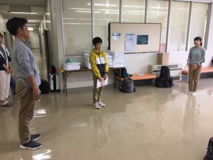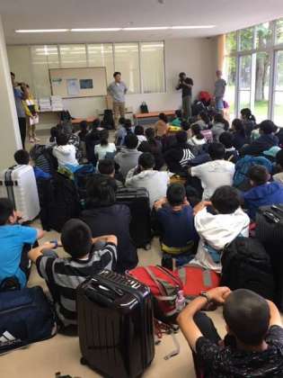 朝食の後、寝具を片付けや部屋の掃除をして出発準備をしました。閉園始業式を行い学園を出発しました。