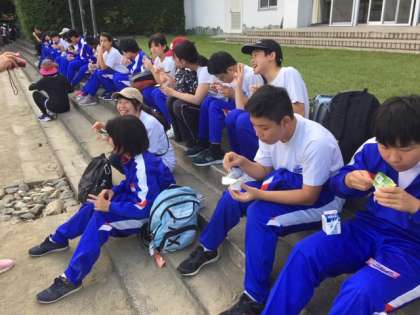 全員元気に学園に戻ってきました。マスカットゼリーと牛乳のおやつをいただきました。