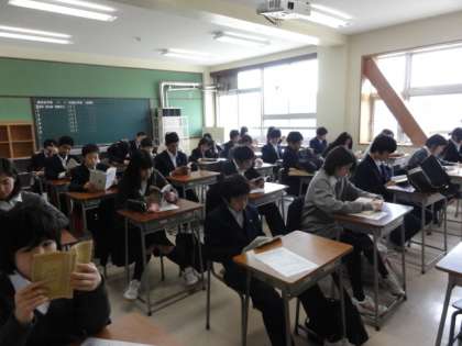八幡中学校では毎朝8:30から10分間、読書を行います。