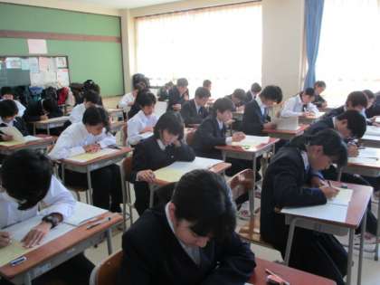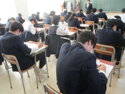 本日から期末考査が始まりました。どの学年の生徒も真剣に問題に向かい合っています。