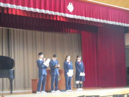 3年生の学級委員が取り仕切り、厳粛な雰囲気の中、練習が行われました。