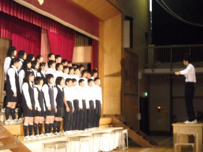 紹介者の言葉に「高いハードルを越える」とありました。その言葉の通り4声が調和するのに苦労したようです。全体の合唱は3年生らしくメリハリのある演奏でした。