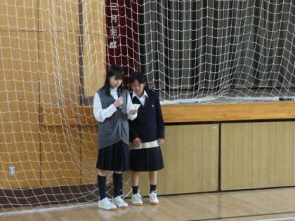 1年生の実行委員の生徒が司会を務め、行動班、生活班での各係長が前に出て、全体に係からのお願いや、注意事項などの話をしました。