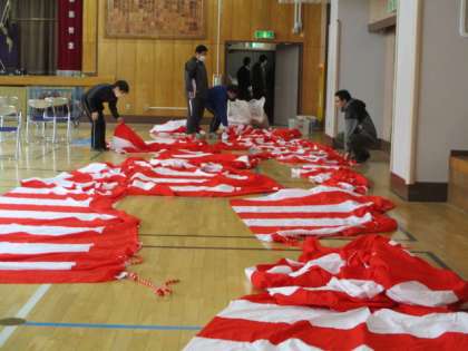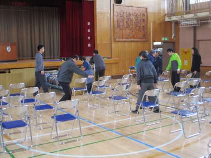 卒業式を間近に控え、先生方で会場の準備をしています。