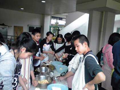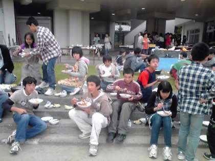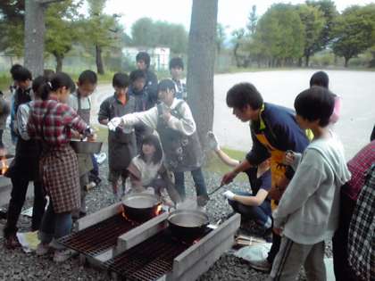 みんなで協力して飯ごうすいさん。今晩のメニューはカレー。