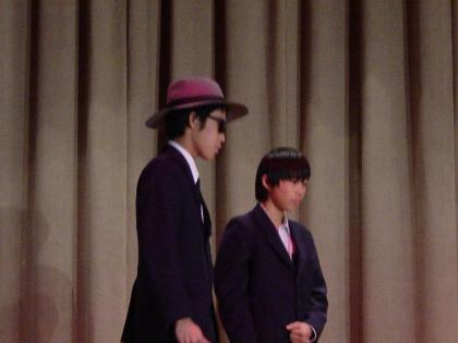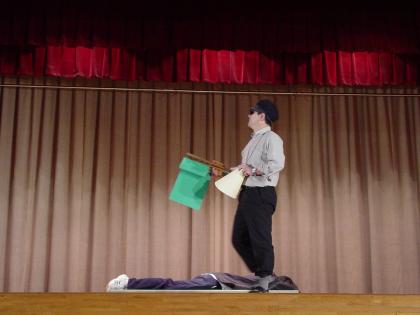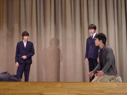3年生の選択英語の発表は、英語劇「セントバーナード殺人事件」です。脚本も演出もすべて生徒たちが担当しました。長いセリフもしっかり覚え、堂々とした演技に驚きました。最後のオチにも驚かされました。ただ英語を話すだけでなく、劇にしたところが3年生のすごいところです。