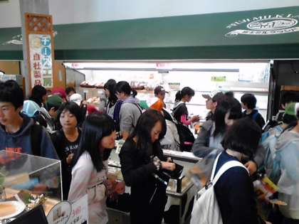 昼食は全クラスそろって富士ミルクランドで。そしてお土産を買って予定通り東京に向け出発します。